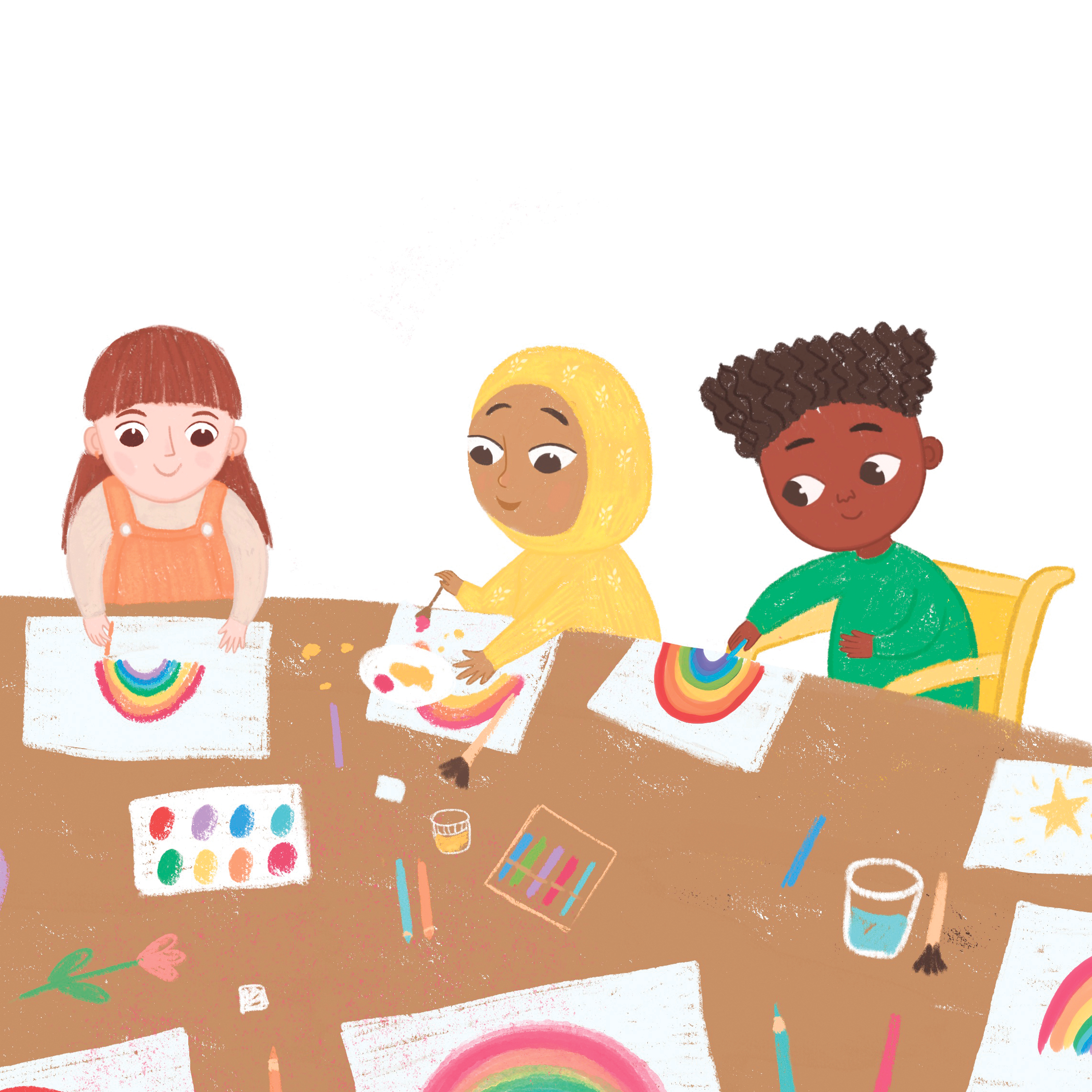 This is perfect for children as they learn to regulate their emotions and form friendship connections. Invite your child to imagine that when they are kind to their friends, they are giving a rainbow. This can take the form of whatever your child imagines: saying a kind word, doing a loving gesture, or offering an invitation to play.